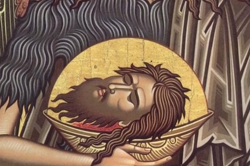 По наређењу цара глава светитеља је одсечена односно “усекована” и на тањиру донета пред његову пасторку, играчицу Салому.