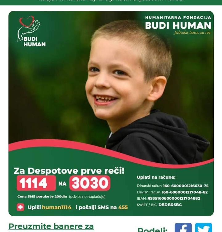 Породица није у могућности да сама обезбеди новчана средства која су им неопходна да Деспот настави са лечењем, стога се обраћају свим хуманим људима да им помогну.