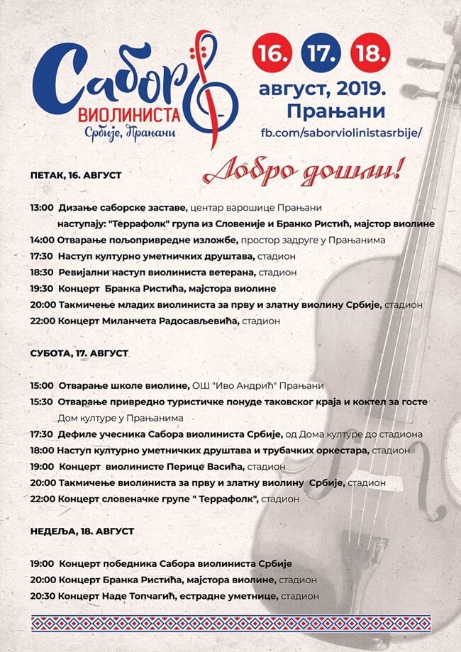 Горњи Милановац – Оснивачки, први Сабор виолиниста Србије почиње у петак дизањем саборске заставе у центру Прањана.