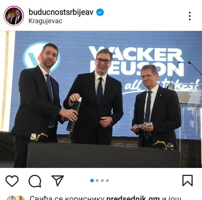 “Немачка мудрост казе да је лако започети, али да у истрајности лежи уметност, односно успех. Наш прелепи Крагујевац, срце Шумадије, одувек је био град индустрије, неретко генератор развоја Србије и нема бољег места за домаћина вашој компанији од Крагујевца”, поручио је Вучић.