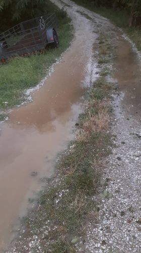 “Од сваке обилније кише нама је овако, за десетак минута останемо без пута. Данас је град падао у три наврата а сручила се и огромна киша тако да је коловозом текло око 20 центиметара воде. Канали ни пропусти нису могли да приме сву ту воду а камен којим је пут насут однет је. Ако не успем колико толико сам да санирам ја ујутру нећу моћи на посао”рекао је за ТопПрес Ненад Танасијевић.
