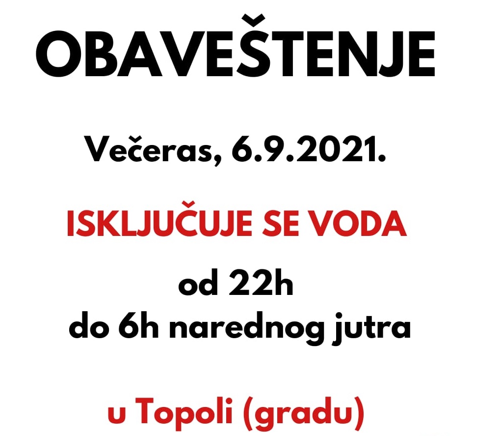 Топола – Како се хидролошка ситуација у Тополи није значајније мењала са рестрикцијом воде се и даље наставља. Села која се налазе на градском систему водоснабдевања била су искључена за викенд, а од вечерас се поново уводе рестрикције и у вароши Топола у периоду од 22 до 6 наредног јутра.