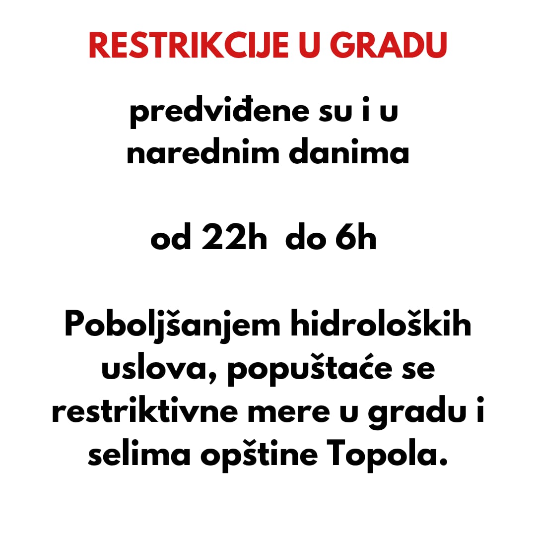 Како је најављено из ЈКСП Топола са рестрикцијом се наставља и даље а са побољшањем хидролошких услова попустиће се и са рестриктивним мерама.